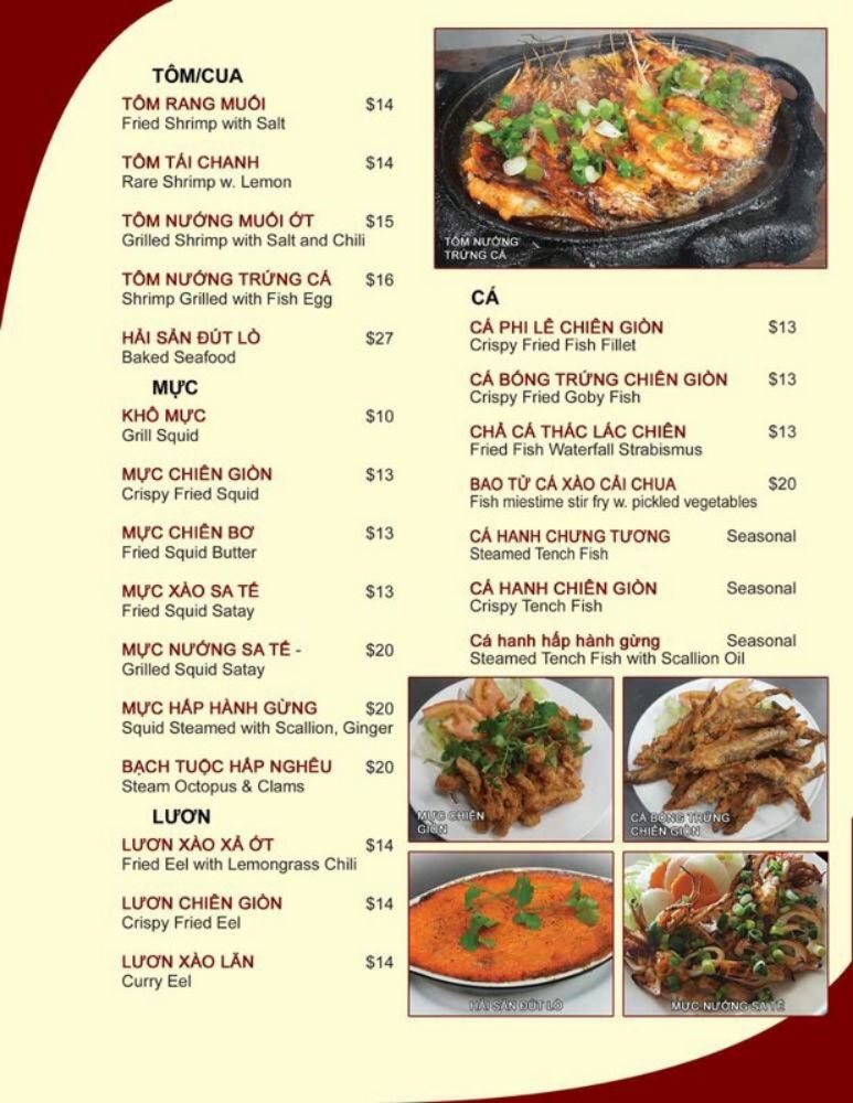 6 Van 8, a Vietnamese establishment located in Garden Grove, CA, offers a range of traditional dishes with a casual and lively ambiance. The menu includes delicious salads like Goi Oc Do with red snails and Goi Xoai Kho Muc with dried squid. Seafood lovers can enjoy grilled snails, clams sautéed with basil, and crispy fried squid. Customers rave about the tasty food, affordable beer, and great service. The atmosphere is perfect for groups to enjoy happy hour specials while watching sports games. Despite some noise, the overall experience is enjoyable with excellent dishes like chicken feet and octopus. If you don't mind the smoky smell, 6 Van 8 is a must-visit for authentic Vietnamese cuisine and a vibrant dining experience.